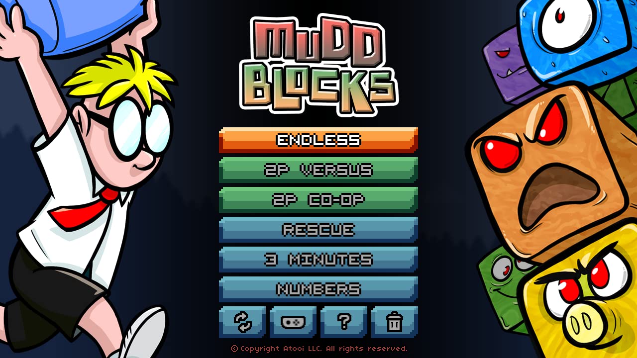 It’s the greatest collection of muddy games under one roof! Revisit the platforming fun of the award-winning Mutant Mudds Deluxe and Mutant Mudds Super Challenge on your Nintendo Switch™. But wait, there’s more! A brand-new game has been added to the collection!! Fend off the rising mudds from below in the new explosive puzzler, Mudd Blocks. Mutant Mudds Deluxe is a "12-bit" action platformer with 80 levels full of pixels and platforming fun. Our hero, Max, can leap into the third dimension by jetting between the background and foreground playfields with his trusty jetpack in this unique dimensionally-woven experience. Armed with a heavy-duty water cannon, Max has what he needs to vanquish his long-term nemesis: the Mutant Mudds. Max must blast and hover his way across the soiled landscape to seek out mysterious Water Sprites. Mutant Mudds Super Challenge features over 40 levels filled with malicious mutant muds, new platforming challenges and unique boss fights. Run, jump, hover, and blast your way across five new vibrant worlds, presented with colorful neo-retro pixel art and sublime chiptune music. Defy the laws of the second dimension by leaping between foreground and background layers, dispensing muddy justice with your faithful water cannon. Utilize your trusty power-ups to traverse tricky obstacles and gain access to special secret levels. Finally, Max’s mudd-busting work is never done in Mudd Blocks! A muddy horde of mutants is rising up from below… in block form! Throw water bombs down to wash them away. You can even use the multicolored mudd blocks against themselves. Go solo and best your high score or team up with a friend for two player co-op or head-to-head versus fun. You can even try one of the other unique modes such as Numbers and Rescue to put your block-busting skills to the test.